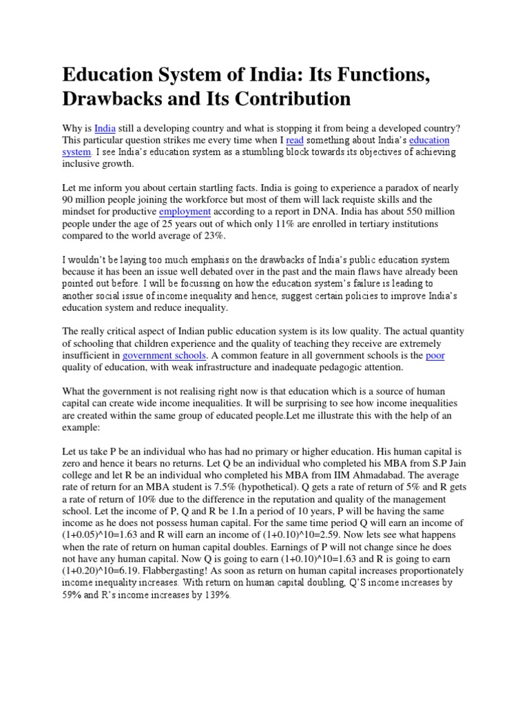 Doc Advantages Disadvantages Of Indian Edu Systems Nadeem Shaikh Academia Edu Especially since most people that criticize india have never left shores of this country and been abroad to actually experience what.