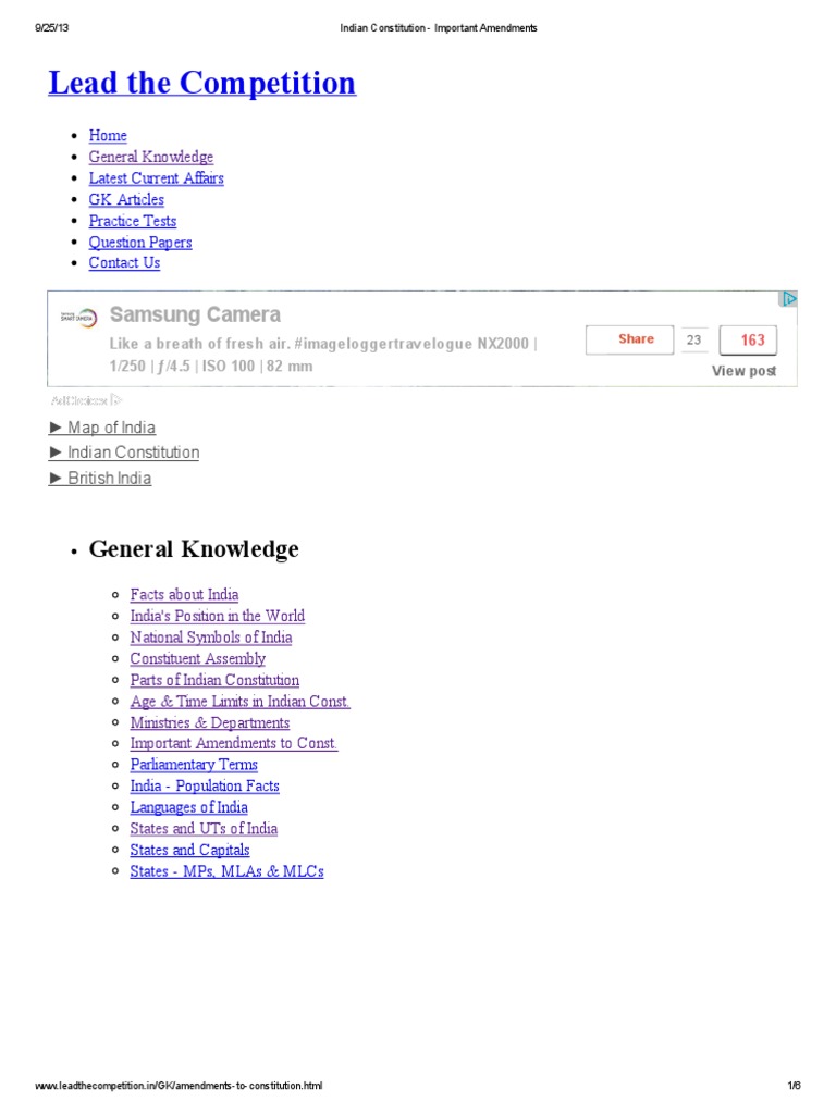 Important Amendments In Indian Constitution - There have been 104 amendments in the constitution of india up to january 2020.