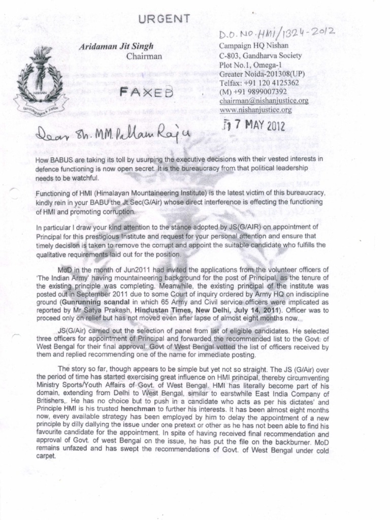 Do Letter Aridaman Jit Singh To Minister Of State For Defence Govt Of India And His Response To Team Nishan 05 July 2012 Corruption In Army Politics Of Asia Justice Today, bureaucracy is the the purpose of bureaucracy.